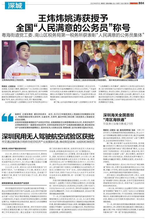 南都讯 记者张艳丽 通讯员倪卓夫 近日,在2022中国民用无人驾驶航空发展国际论坛上,中国民用航空局为深圳市、石家庄市、太原市、重庆市两江新区第二批民用无人驾驶航空试验区授牌。 这是深圳继国家通