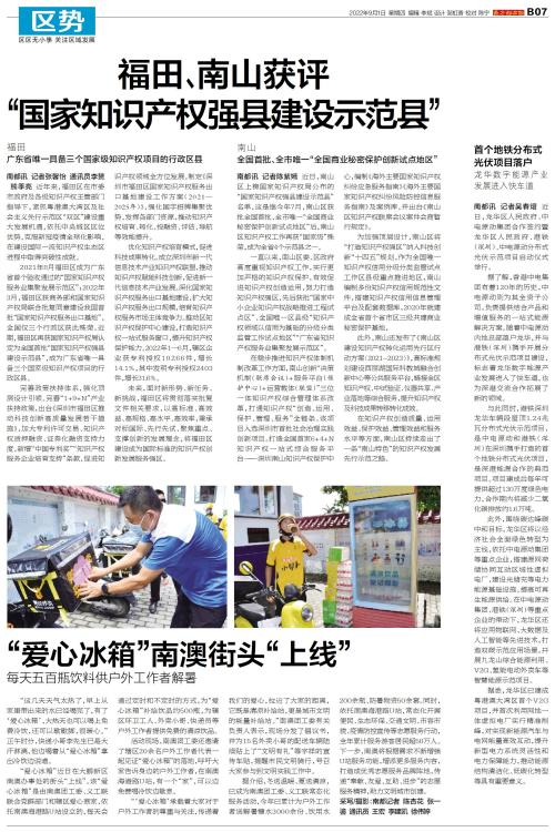 福田广东省唯一具备三个国家级知识产权项目的行政区县 南都讯 记者张馨怡 通讯员李赟 熊季亮 近年来,福田区在市委市政府及各级知识产权主管部门指导下,紧抓粤港澳大湾区及社会主义先行示范区“双区”建