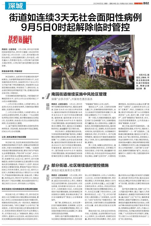 A 福田 南都讯 记者张馨怡 9月4日,深圳市举行疫情防控新闻发布会,福田区委常委、区委(区政府)办公室主任李志东表示,福田区将继续对在南园街道(除现有高风险区外)执行中风险区管控措施,福保街