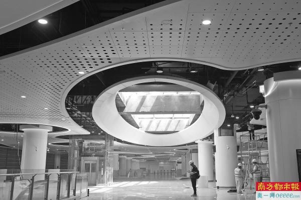 记者现场发现,岗厦北枢纽内核心换乘区的中心景观,是以“深圳之眼”为主题,引入飞马螺旋线双向延伸,体现了深圳“汇聚、包容、国际化”文化特征。其中,天眼中庭的设计采用了48×51.2米地下超大跨度组合结构,与彩田立交桥合建,结构复杂,设计建设难度极大,该结构跨度之大在国内外明挖地下结构中也尚属首次。深铁集团相关负责人介绍,岗厦北站结合地下空间体系、市政功能、轨道交通、文化景观等要素进行一体化建设,不仅实现了“四线合站”高效换乘,还创造了“源于地铁、不止地铁”的全新公共空间,丰富了城市行为的多元属性。