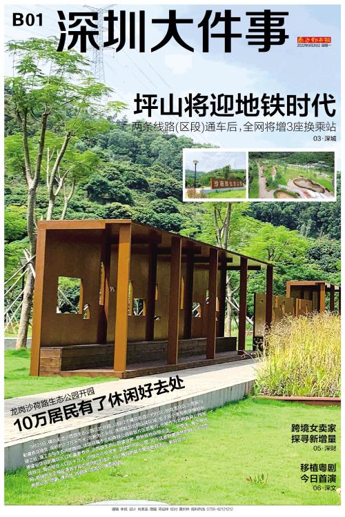 9月21日,横岗街道沙荷路生态公园正式开园。公园位于横岗街道六约社区,地处龙岗区沙荷路与勤富路交接处,面积约2.7万平方米,北侧为工业区,南部毗邻北桐山体区域,处于两个类型板块绿地衔接之处,是工业