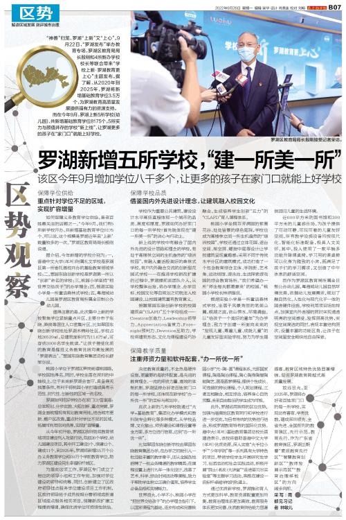 “神兽”归笼,罗湖“上新”又“上心”。9月22日,“罗湖发布”举办教育专场,罗湖区教育局局长殷刚和4所新办学校校长等联合带来“学校上新·罗湖教育更上心”主题发布。据了解,从2020年到2025年,