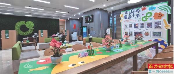 为了更好地营造活动氛围,让深圳“小画家”的作品能够被更多人看见,深圳国寿充分利用暑假档期,以“国寿小画家”为主题元素装点五大柜面,并举办“历届优秀作品巡展”和现场互动活动,激发临柜小客户的艺术创作热情。