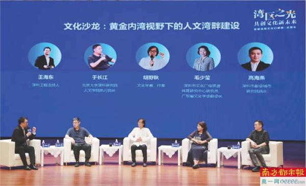 此外,一场由首届文化口碑榜超豪华阵容评审——胡野秋、高海燕、毛少莹、于长江带来的文化沙龙,也带给在场的观众颇多思考。他们从黄金内湾这一经济概念延伸至文化概念,探讨人文湾畔建设的血脉基础、文化内核、深圳角色,以及未来畅想等。高海燕认为,突出黄金内湾不仅仅是因为经济强度和创新力度,更多是在战略的持续上和发展的顺序上率先突出黄金内湾的发展。宝安是黄金内湾的“前线”,所以其区域发展的路径也应有所变化,不仅仅是制造业大区,还应该发挥综合能力带动周边的发展。胡野秋表示,黄金内湾是近代以来中国最活跃的文化阵地。在这里,传统文化和现代文化,地域文化和国家文化,中国文化和西方文化,海洋文化和内陆文化,八种文化形成四类交融,具有非常强的文化发展空间。在毛少莹看来,整个湾区来说,需要打通和统筹,整合以后,才能形成合力和共赢,保持各自的特色,又能共同促进人文湾区的建设。