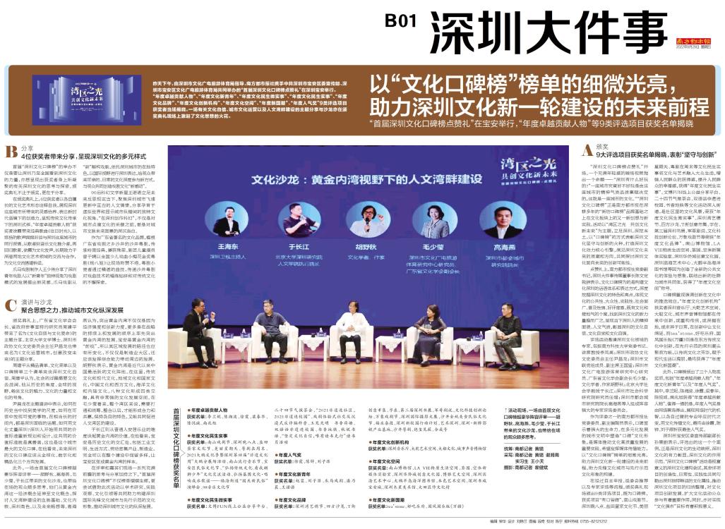 以“文化口碑榜”榜单的细微光亮,助力深圳文化新一轮建设的未来前程
