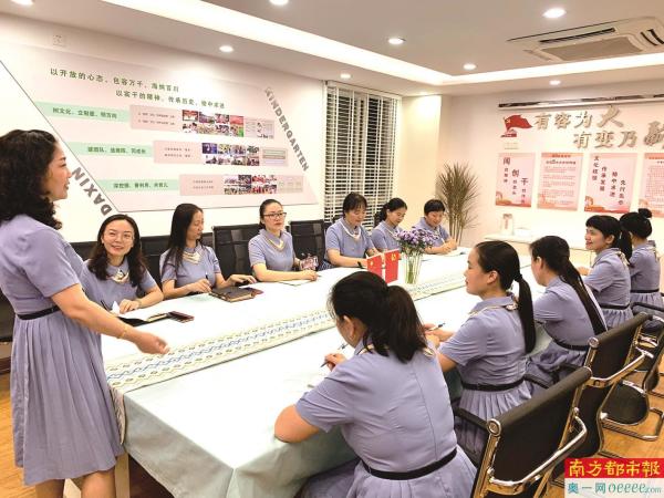 具体管理过程中,大新幼教集团通过由核心园派驻优秀人员任职成员园的中高层管理者的做法,架构一体多翼的管理模式,统一管理思路。集团充分利用核心园力量,科学优化“1个本部+N个分园”的资源配置,创建标准化党组织,建设大新党组织品牌,因优异的表现被评为南山区三星支部。以党建引领“有容为大,有变乃新”文化建设,营造清风正气环境,提出了以“容变”文化“创幸福发展”之路、以“容变”文化“创专业发展”之路的顶层设计。
