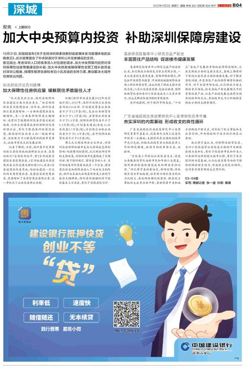 加大中央预算内投资 补助深圳保障房建设