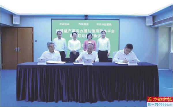 10月31日上午,深圳市司法局、深圳市国资委、深圳市市场监管局在天平大厦举行了《关于推进破产事务办理与信用服务平台建设联动的框架协议》签约仪式。