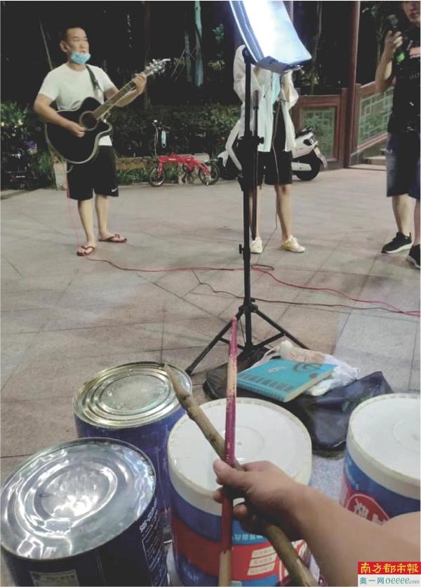 两个同样喜欢音乐的人,希望演出的想法不谋而合。因为有些地方管理严格、不让在公共场所唱歌,他们开始骑着电动车在附近尝试了各种地方:壹方城斜对面的施工工地旁边,“没有居民、很宽阔”;西湾红树林,“过去要骑50分钟的车,有时候下班7点多,8点钟到那里”;深南北环立交下的桥洞,“在马路下面,完全不扰民”。