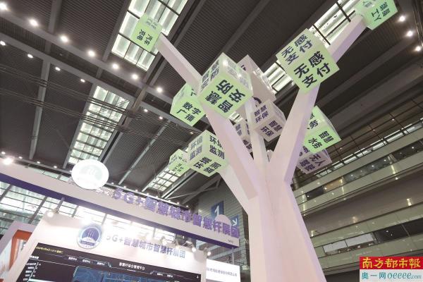 深圳的5G+智慧城市智慧杆展团,通过多杆合一实现城市的智能化管理。 南都记者 赵炎雄 摄