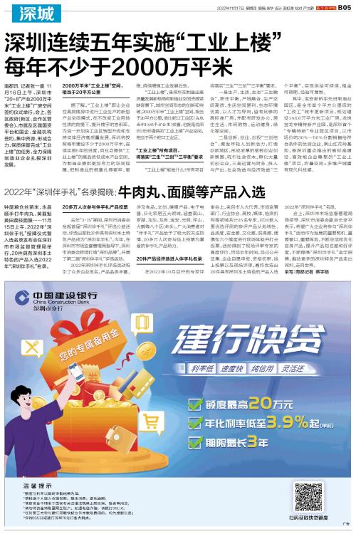 深圳连续五年实施“工业上楼”每年不少于2000万平米