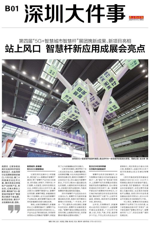 南都讯 记者张艳丽 高交会是深圳开放创新的名片,也是洞察行业发展新趋势的窗口。11月15日,第二十四届高交会拉开大幕,展示各前沿领域和产业的新产品、新业态。记者从展会上获悉,第四届“5G+智慧城市