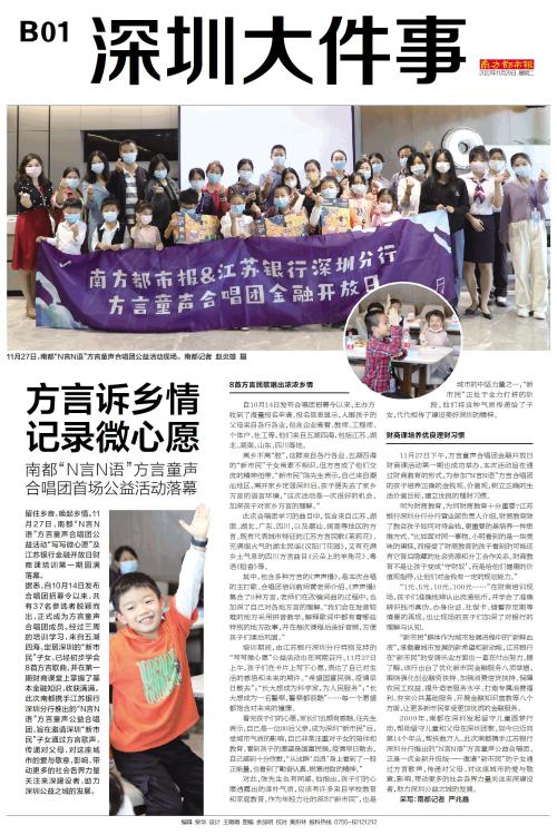 留住乡音,唤起乡情。11月27日,南都“N言N语”方言童声合唱团公益活动“写写微心愿”及江苏银行金融开放日财商课培训第一期圆满落幕。 据悉,自10月14日发布合唱团招募令以来,共有37名参选者脱