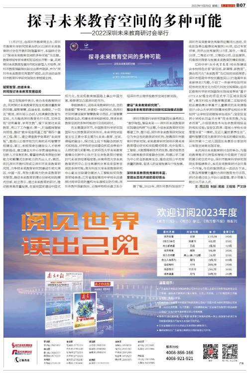 11月27日,由深圳市教育局主办、深圳市教育科学研究院承办的2022深圳未来教育研讨会在市教科院隆重举行。本届研讨会以“探寻未来教育空间的多种可能”为主题,教育领域专家学者和知名校长齐聚一堂,共同