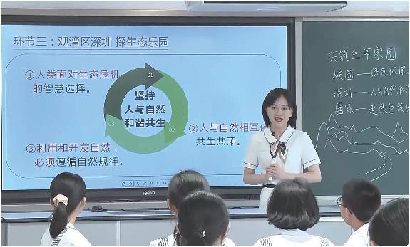 知行促合一。基地成员、深圳市宝安中学(集团)初中部教师林睿展示了精彩的价值体悟式教学课例《共筑生命家园》,通过“访校园生活”“探河道变化”“颂美丽山河”“绘美好蓝图”四个环节,引导师生共访、共探、共颂、共绘“生命家园”。该课例入选全国中小学思政课教师基本功展示交流活动“典型经验”。