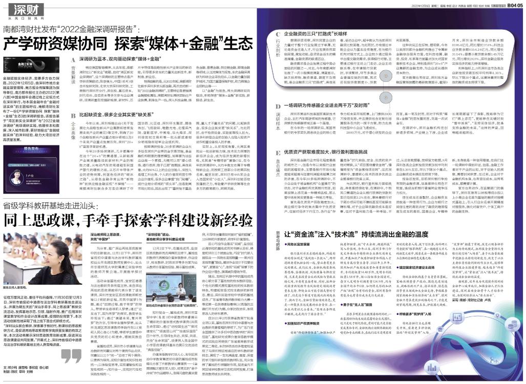 2022年12月5日,由深圳市地方金融监督管理局、南方报业传媒集团为指导单位,南方都市报社主办的2022(第八届)中国金融年会通过线上论坛方式在深圳举行。