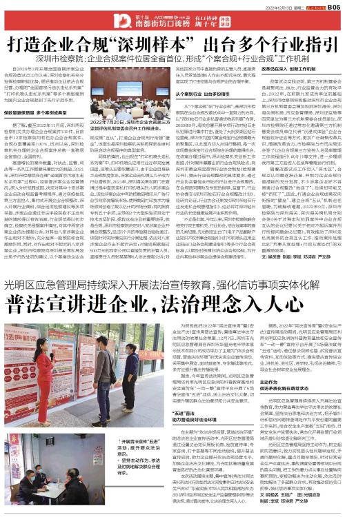 自2020年3月开展全国首期涉案企业合规改革试点工作以来,深圳检察机关充分发挥检察职能优势,更好推动企业依法合规经营,办理的“全国首宗污油水走私系列案”“打印机喷头走私系列案”等多个典型案例为国内