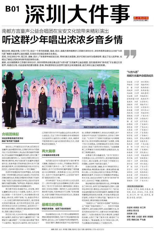 留住乡音,唤起乡情。12月17日,经过一个多月的招募、海选、培训,由南方都市报携手江苏银行深圳分行、深圳市慈善会联合主办的“N言N语”南都方言童声公益合唱团,在宝安文化馆迎来音乐会演出。 现场,