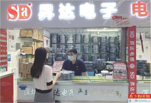 华强北街道党工委积极引导辖区党员商户主动亮明党员身份,带头诚信守法经营。