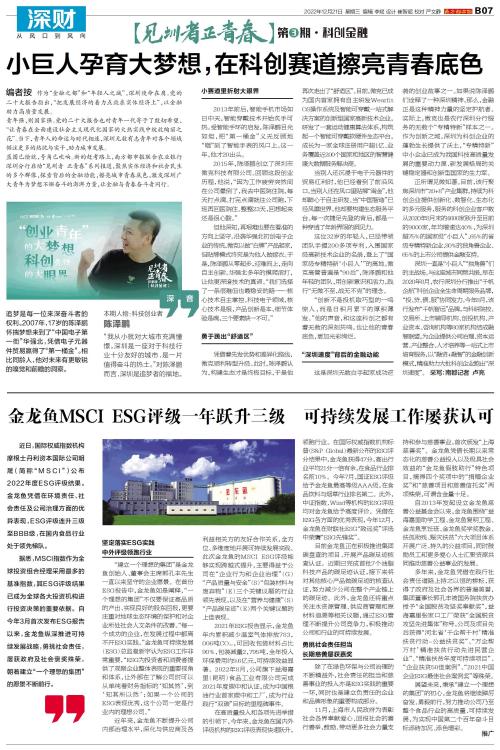 本期人物:科技创业者 陈泽鹏 编者按 作为“金融之都”和“年轻人之城”,深圳使命在肩。党的二十大报告指出,“把发展经济的着力点放在实体经济上”,以金融助力高质量发展。 青年强,则国家强。党的