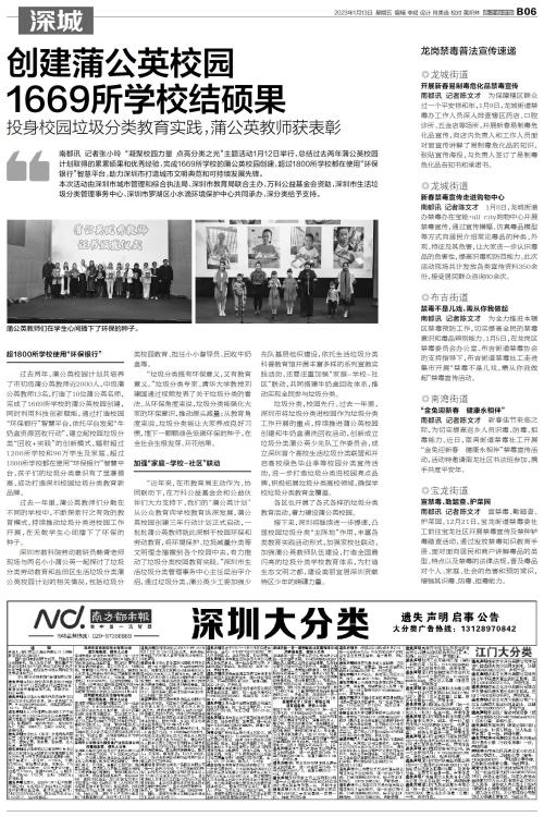 南都讯 记者张小玲 “凝聚校园力量 点亮分类之光”主题活动1月12日举行,总结过去两年蒲公英校园计划取得的累累硕果和优秀经验,完成1669所学校的蒲公英校园创建,超过1800所学校都在使用“环保银