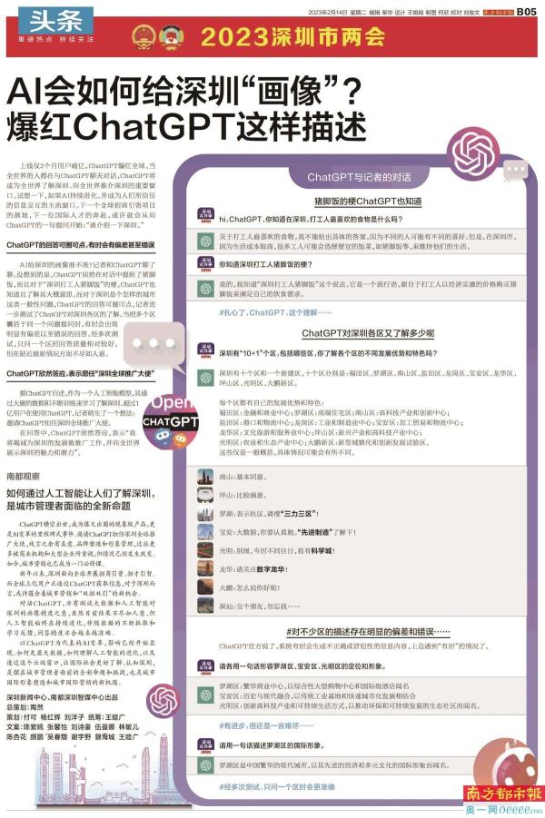 这几天,ChatGPT可以说是“火爆全网”。大家想出各种各样奇奇怪怪的问题尽情“投喂”给ChatGPT。前些天,南都记者跟ChatGPT浅浅聊了聊深圳各区,有人在评论区调侃称,“我问他下期彩票号码,他不知道”。
