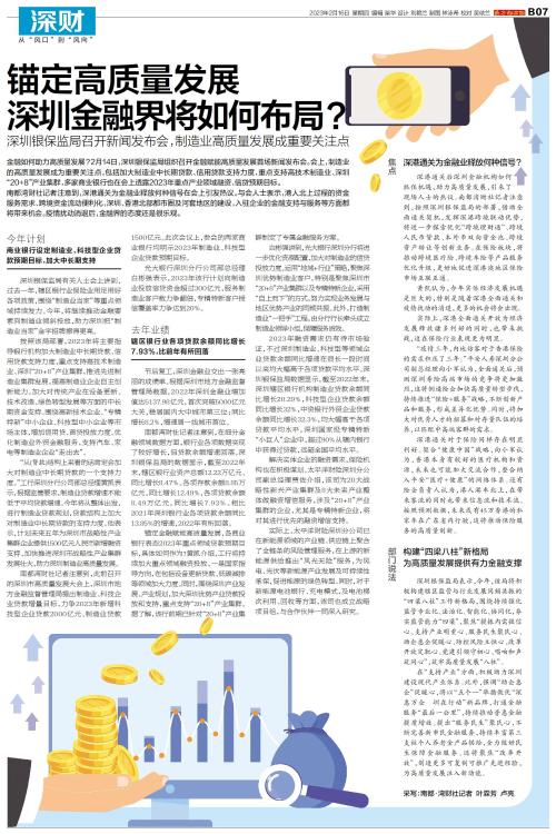 金融如何助力高质量发展?2月14日,深圳银保监局组织召开金融赋能高质量发展首场新闻发布会。会上,制造业的高质量发展成为重要关注点,包括加大制造业中长期贷款、信用贷款支持力度,重点支持高技术制造业、
