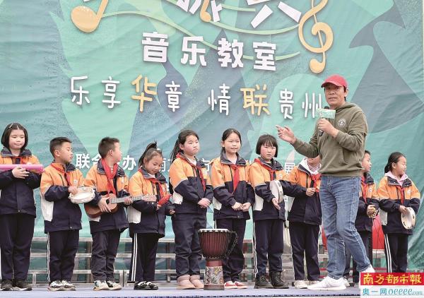王厚明给孩子们上乡村振兴音乐教室第一课。