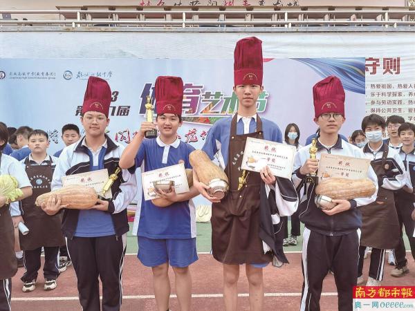 记者从深圳市龙岗区了解到,龙城高级中学(教育集团)龙城初级中学近日举办了劳动课程展暨首届厨艺大赛,学子们纷纷化身“小厨神”,做出了一道道造型精致的菜品,现场一片赞叹“好吃!好吃!真好吃!”