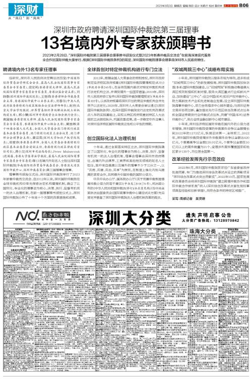 2023年2月28日,“深圳国际仲裁院第三届理事会理事聘书颁发仪式暨2023年新春仲裁员交流会”在前海深港现代服务业合作区国际仲裁大厦举行。根据《深圳国际仲裁院条例》的规定,深圳国际仲裁院理事会理