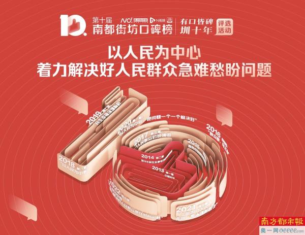 非凡十年,有口皆碑。“以人民为中心 着力解决好人民群众急难愁盼问题”,第十届南都街坊口碑榜暨有口皆碑圳十年评选活动启动以来,累计征集到百余件民生实事,诞生了有口皆碑圳十年致敬大奖等重要奖项。