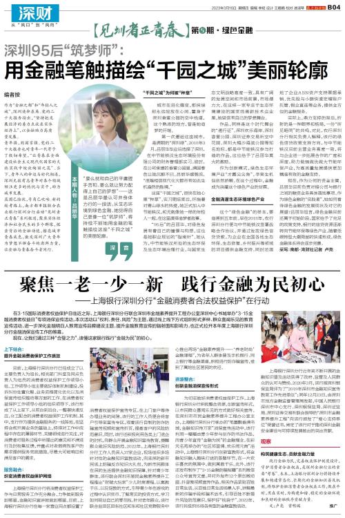 编者按 作为“金融之都”和“年轻人之城”,深圳使命在肩。党的二十大报告指出,“坚持把发展经济的着力点放在实体经济上”,以金融助力高质量发展。 青年强,则国家强。党的二十大报告也对青年一代寄予了