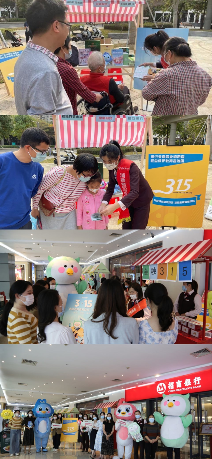 银企联动,打造“金融集市”:招商银行深圳分行联合支行周边个体工商户,共同打造“金融集市”一条街,设立“金融3·15”专台,传播新颖活泼的金融知识;党建融合,践行“金融为民”:联合福田区福新社区党群服务中心走进社区,聚焦“一老一少”重点人群,以社会公众喜闻乐见的形式,切实将金融知识送到消费者身边;警银联动,搭建“交流平台”,与龙华交警大队联学联建,互通金融风险提示和交通风险提示,共同保障市民生命和财产安全。
