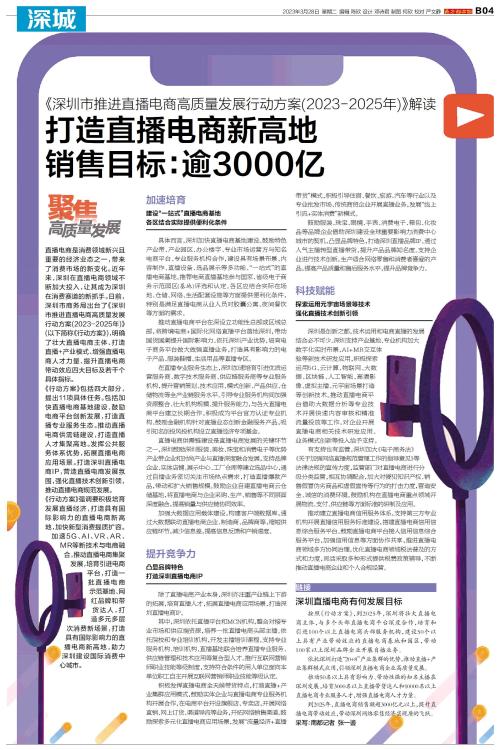 直播电商是消费领域新兴且重要的经济业态之一,带来了消费市场的新变化。近年来,深圳在直播电商领域不断加大投入,让其成为深圳在消费赛道的新抓手。日前,深圳市商务局出台了《深圳市推进直播电商高质量发展行