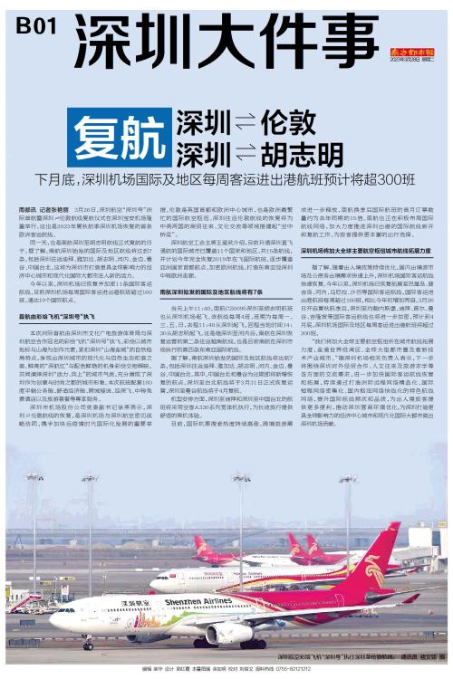 南都讯 记者张艳丽 3月26日,深圳航空“深圳号”洲际首航暨深圳 伦敦航线复航仪式在深圳宝安机场隆重举行。这也是2023年夏秋航季深圳机场恢复的首条欧洲客运航线。 同一天,也是南航深圳至胡志明航