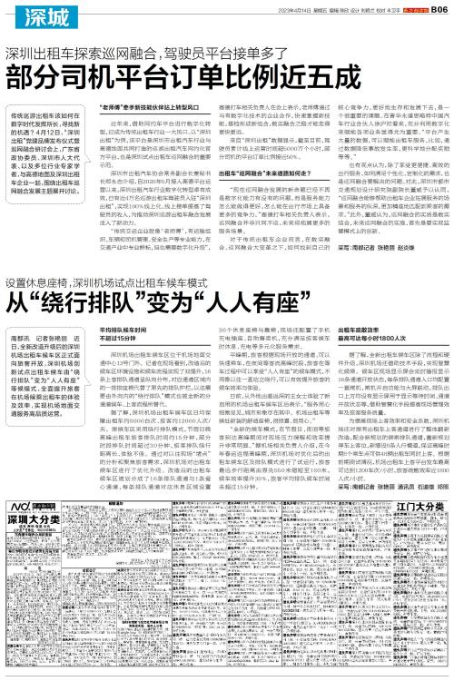 南都讯 记者张艳丽 近日,全新改造升级后的深圳机场出租车候车区正式面向旅客开放,深圳机场创新试点出租车候车由“绕行排队”变为“人人有座”等候模式,全面提升旅客在机场候乘出租车的体验及效率,实现机场