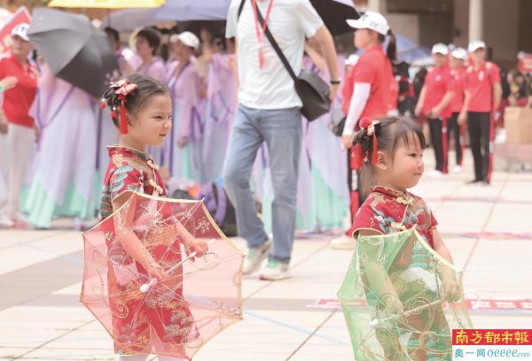 飘色表演队伍过来啦!人群中爆发一阵欢呼。飘色巡游是一种融戏剧、魔术、杂技、音乐、舞蹈于一体的传统民俗艺术,参演的孩子年龄为5岁至7岁,飘色巡游队伍里的萌娃们一出场便成了大家目光的焦点,他们以钢枝凌空而立、高高“飘”在空中,造型各异,有“荷花仙子”“送子观音”“步步高”等,引得游人啧啧称叹的同时也觉得逗趣不已。在巡游中,他们除了扮演神仙,还“即兴表演”了打瞌睡、吃棒棒糖,以及被迫营业时的各种表情包。他们经过的地方,大家纷纷拿出手机,开启疯狂拍照模式,人们内心的喜爱之情溢于言表。
