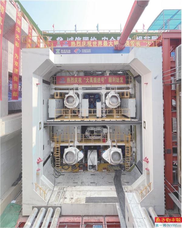 南都讯 记者张艳丽 4月18日,世界最大断面组合式矩形顶管机“大禹掘进号”在深圳地铁12号线二期工程沙三站顺利始发,标志着国内首个超大断面矩形顶管暗挖车站正式进入施工阶段,实现了地铁车站施工工法的重大创新,填补了我国在机械化地铁暗挖车站施工方面的空白。