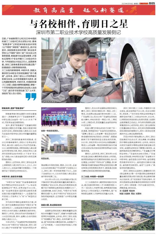 日前,广东省教育厅公布2023年中高职衔接三二分段对口自主招生计划,素有“职教清华”之称的深圳职业技术学院(以下简称“深职院”)备受关注。该计划显示,深职院将与深圳市第二职业技术学校(以下简称“深