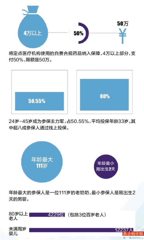 数据还显示,参保人年龄跨度超过110岁,年龄最大的参保人是一位111岁的老奶奶,最小参保人是刚出生2天的男婴。其中80岁以上老人有4229位,包括3位百岁老人,未满周岁婴儿有12237人。