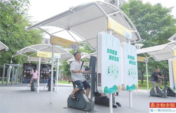 莲花山公园的室外智能健身房。 新华社发