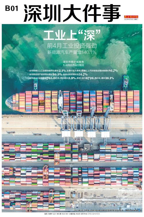 深圳市统计局发布1-4月经济运行情况 ◎全市规模以上工业增加值同比增长2.1%。主要行业大类中,规模以上汽车制造业增加值增长81.7% ◎全市固定资产投资同比增长10.3%。制造业投资增长