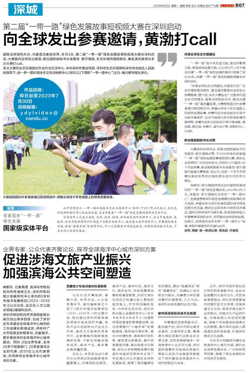 凝聚全球绿色共识,共建清洁美丽世界。本月3日,第二届“一带一路”绿色发展故事短视频大赛在深圳启动。大赛面向全球发出邀请,联合国前副秘书长埃里克·索尔海姆,生态环境特邀观察员、著名演员黄渤为本次大赛