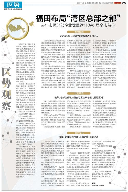 深圳市委七届六次全会指出,“要大力培育发展总部经济、数字经济、平台经济、绿色经济、服务经济、飞地经济、楼宇经济、海洋经济等经济形态,勇于开辟新领域、制胜新赛道”。为深入贯彻落实市委全会精神,福田区