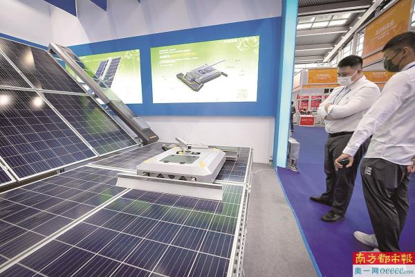 2022年11月15日,在第二十四届高交会上,参观者了解一款智能光伏清洁机器人。 新华社资料图