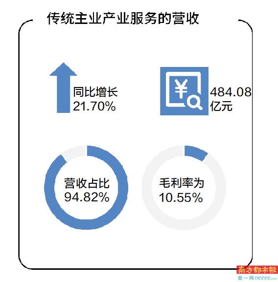 据了解,公司的主营业务包括云计算及存储、数据创新、数字政府与行业数字化转型、高科技产业工程服务等。从行业看,报告期内,传统主业产业服务的营收同比增长21.70%至484.08亿元,占比高达94.82%,毛利率为10.55%,趋向稳定;数字与信息服务营收则同比下滑39.32%至26.44亿元,占比仅为5.18%,毛利率增加4.5%至27.2%。