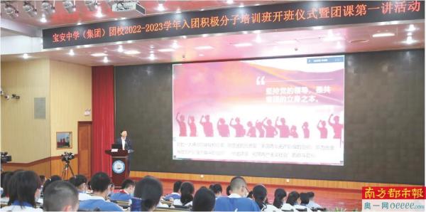 宝安中学(集团)党委书记程显友为入团积极分子上团课。