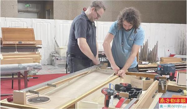 奥地利里格尔管风琴公司技术专家正修复辅压风箱。深圳音乐厅供图