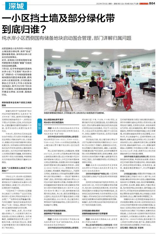 此前因居住小区内存在十年的挡土墙及部分绿化带,突然“变成”国有储备用地,深圳纯水岸小区业主对此有争议。 近日,这场由小区规划用地与城市更新单元范围线“重叠”引发的纠纷迎来新进展。 7月5日,位