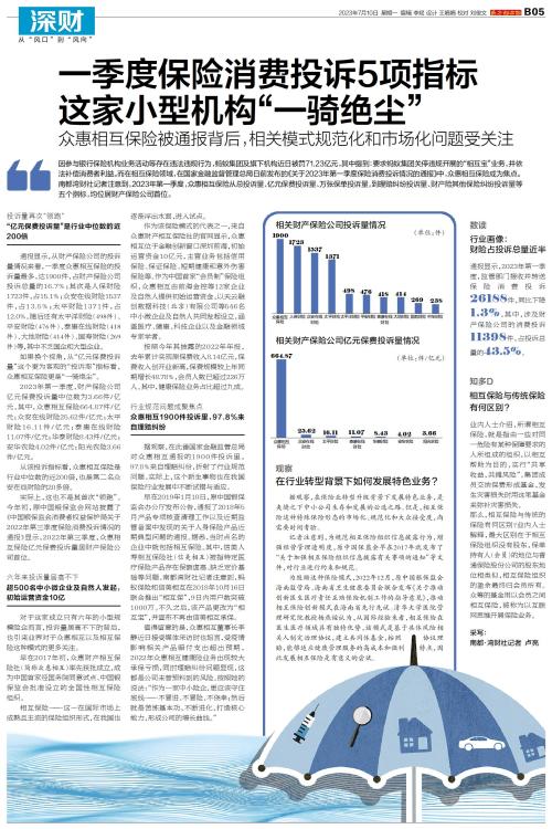一季度保险消费投诉5项指标 这家小型机构“一骑绝尘”